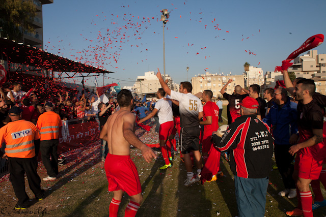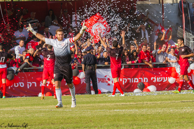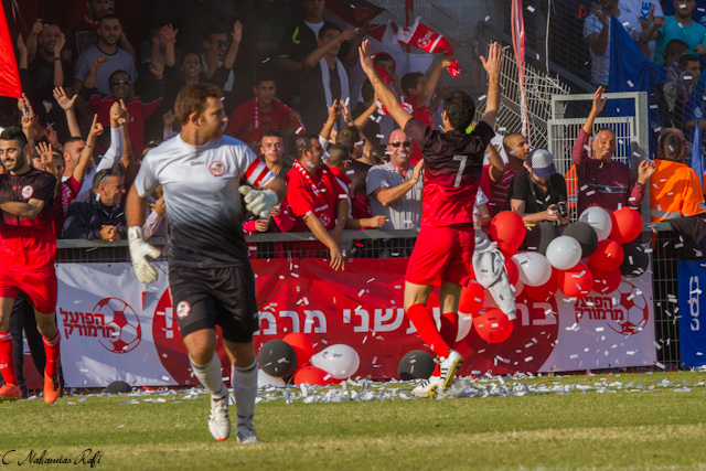 עם שריקת הסיום החלו שחקני מרמורק בחגיגות הנצחון עם הקהל אדיר שלהם, כשהמאמן ארז בנודיס (שנתפס בעדשת המצלמה עם אותה חולצה מהמשחק מול קריית גת..האם בנודיס מאמין בחולצת המזל..?) והיו"ר חנן עדני מצטרפים אף הם לחגיגה.