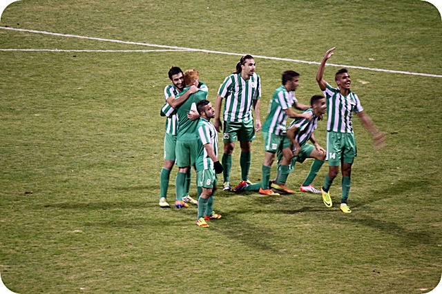 23' בן בן שושן פורץ לכיוון שער נהריה ומוכשל בגסות בתוך רחבת ה 16. השופט מורה ללא היסוס על הנקודה הלבנה. טל בנש בועט כדור חזק בחצי גובה למרכז השער ואינו מותיר כל סיכוי לנדב לוי, 1-0 מוצדק לירוקים.