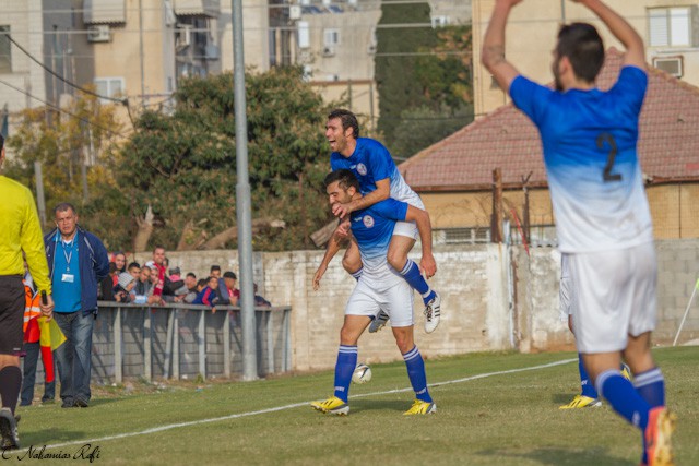 בנודיס מנחם בסיום את חברו שי מאור.( צילום: רפי נחמיאס)
