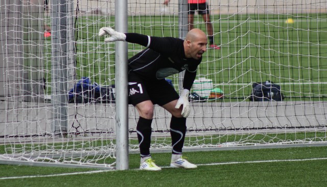 גיא עובדיה מניף את רגל שמאל. הכדור נעצר ברשת