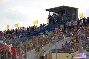 אוהדי קרית גת. בקבוצה הולכים בכל הכוח על הליגה הלאומית. ( צילום:יקיר כהן)