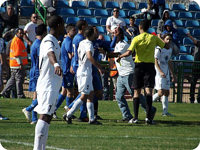בליגה ב', קוון במדינת ישראל שוכב על הקרקע חסר אונים אחרי שלטענתו בקבוק מים מיציע האוהדים נזרק עליו ובכלל פיצוץ משחק צמרת בין רהט לנתיבות, עוד משחק צמרת בין באקה לדבוריה הסתיים בקרב אבנים בין מחנות האוהדים שהמאבטחים במגרש לא מצליחים להשתלט על המהומות והקרב הגיע לתוך המגרש, כן כן, אותו מגרש בו אמורים להיכבש שערים, זה נגמר ב-16 פצועים ופינוי הקבוצות והשופטים בעזרת משטרה.