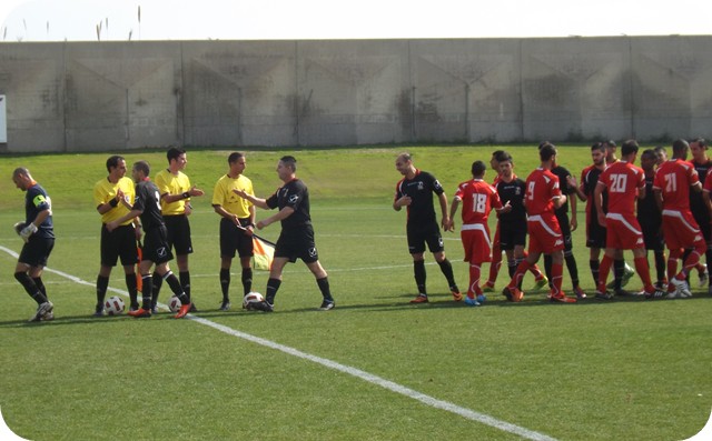 שתי הקבוצות על כר הדשא. (צילום:שלמה אש-חיים)