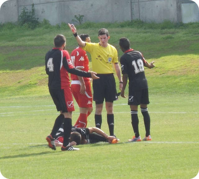 לא קונה את הנפילה של מסג' טעות איומה של השופט. (צילום: שלמה אשר-חיים)