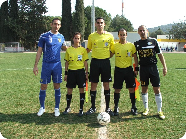 קפטני הקבוצות ושופטי המשחק. (צילום: חיים אברהם)