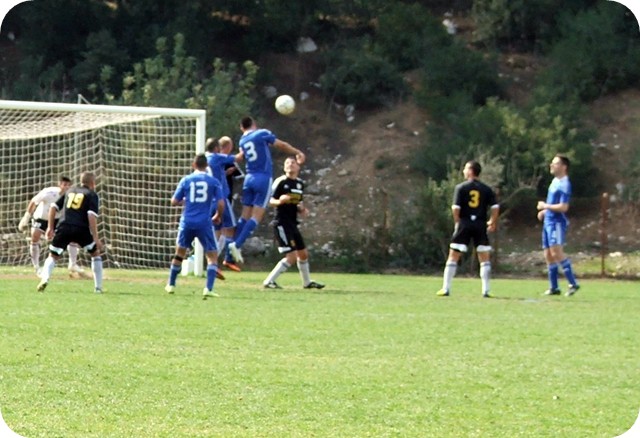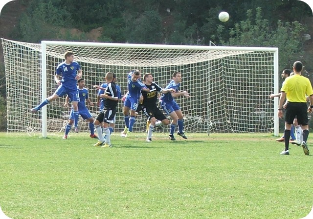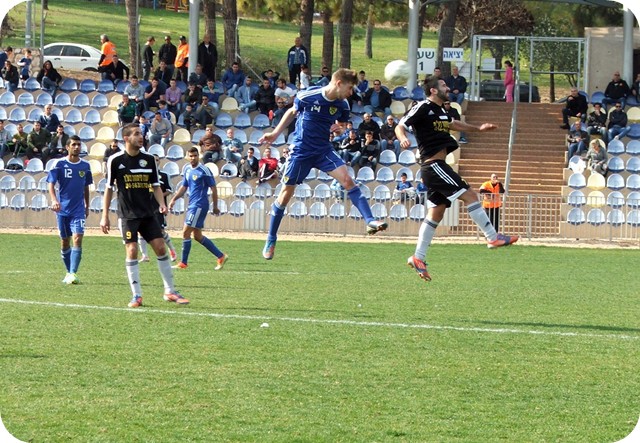 אילן סוויסה מנסה לנגוח לשער. (צילום: חיים אברהם)