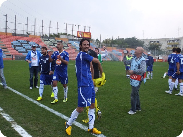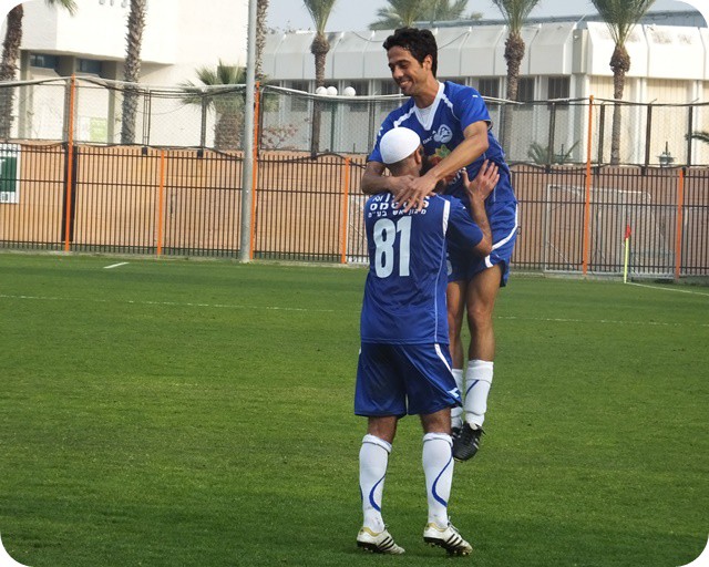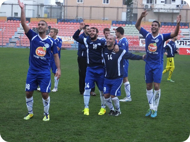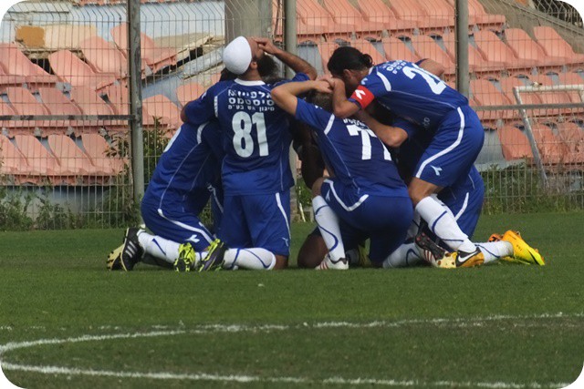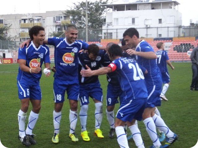 מרציאנו קופץ בשמחה על צדק. (צילום: אביחי חיים)