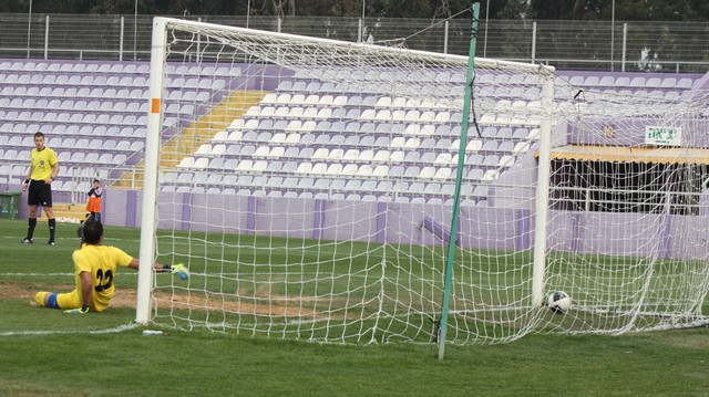 עד שהגיעה הדקה ה-43. לי זלייט קיבל כדור מצוין בתוך הרחבה, מסר רוחב לדודו אפללו שמצא את עצמו מול שער ריק, אך טל ארז הגיח מאחור והכשיל אותו ברחבה, אדום ברור ופנדל. את כדור העונשין לקח סלים אשקר שלא התבלבל והעלה את אילת ליתרון 0:1.