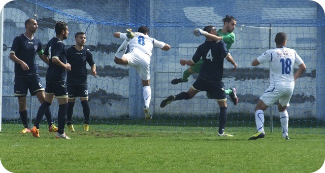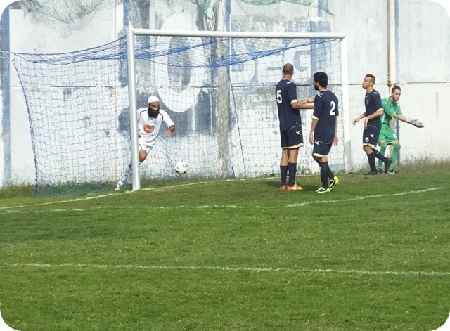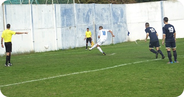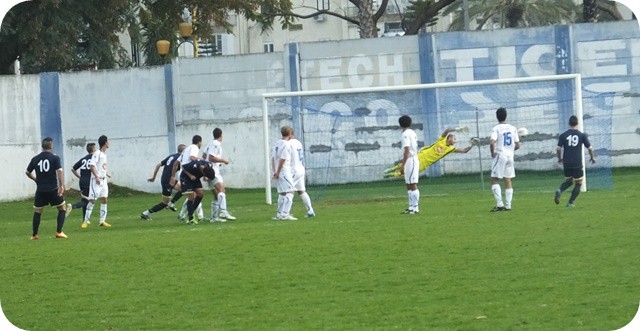 גל טובלי לא יכול היה לעצור את הכדור של סרור. (צילום: אביחי חיים)