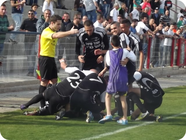 שחקני הגלבוע מאושרים. (צילום: עלאא בדארנה)