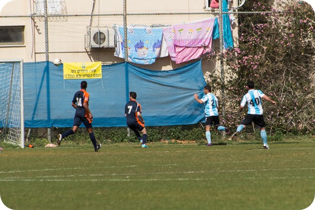 5 דקות לקראת סיומה של המחצית הראשונה, ננו (נתנאל) ועקנין כבש את השער השלישי לזכותה של מחנה. מלחמה חסרת פשרות של ועקנין שחטף את הכדור ודהר לעבר השער, גול גדול של שחקן מוכשר ביותר. השופט שרק לסיום המחצית הראשונה ושלח את שחקני נס ציונה למקלחות להתאושש ואולי אף לחלום על חזרה למשחק. מן העבר השני, מחנה יהודה ירדו לחדרי ההלבשה בתוצאה שבהחלט צריכה להספיק עד סיום 90 הדקות של המשחק.