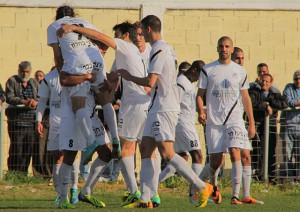 ברק ורד חוגג עם חבריו לקבוצה את שערו (צילום: איתמר מורז)
