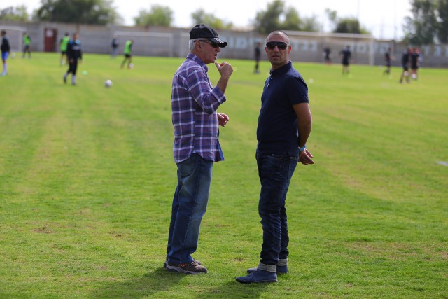 רפי בוסקילה והיו"ר הקבוצה ויקי ברנס.( צילום: ירון כהן)