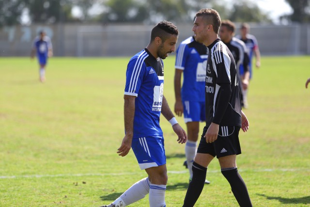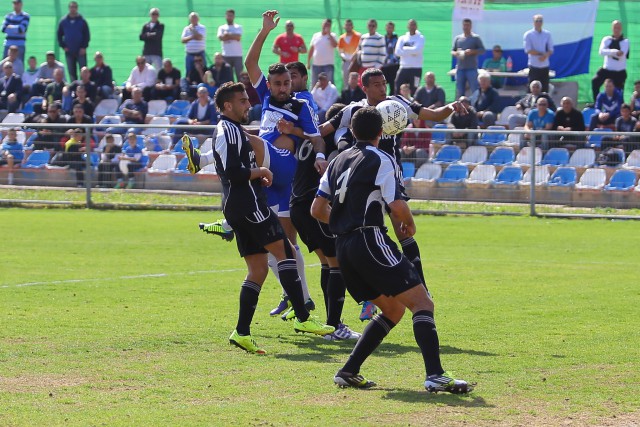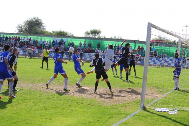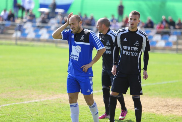 אבי עמוס ראשון לכדור קרן.( צילום: ירון כהן)