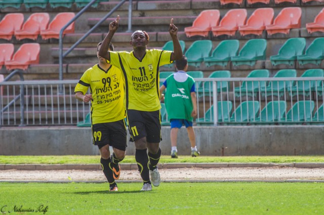 דוס סנטוס הכבוש ועידן ציון המבשל חוגגים.( צילום:רפי נחמיאס)