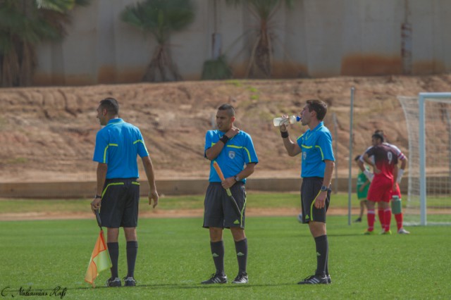 השופט עידן אלמלם וקווניו בהפסקת שתייה.( צילום:רפי נחמיאס)