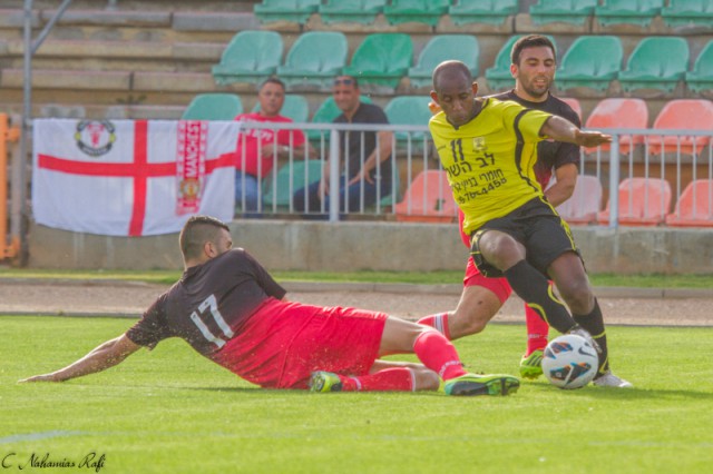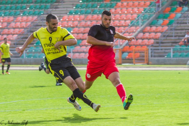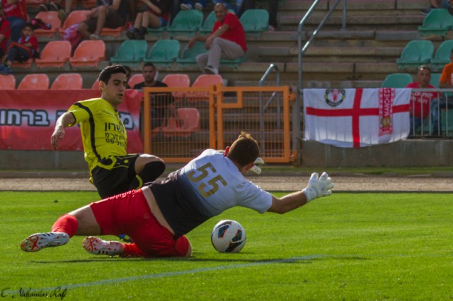 אלעד שיק לפני אלירן שחר. משחק נהדר לבלמה של כפר סבא.( צילום:רפי נחמיאס)