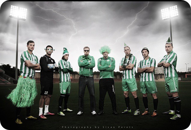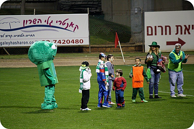 תחרות בעיטות עם תחפושות בכפ"ס..אווירה טובה יש בהפועל כפ"ס. (צילום: אילן מלאכי)