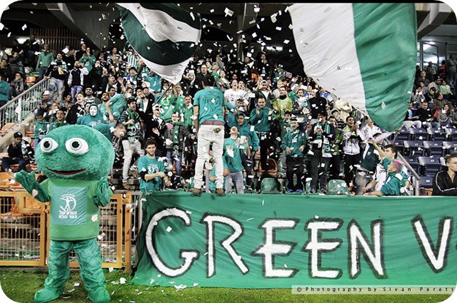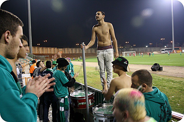 חבר באירגון העורק הירוק...לא נותן לקהל של כפ"ס הזדמנות להפסיק לעודד. שאפו! (צילום: אילן מלאכי)