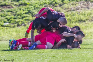 שחקני מרמורק חוגגים. ( צילום:רפי נחמיאס)