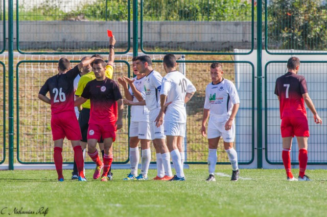 מרמור המשיכה לתקוף ובדקה 32 ראה יינון אליהו את הכרטיס הצהוה השני והשאיר את קבוצתו ב 10 שחקנים לאחר עבירה על דרור ניר. אפי מלכה הגביה היטב את בעיטת העונשין וחנן פדידה שנותר לא מכוסה נגח מדויק לפינה והשווה בצדק את התוצאה ל 1:1.