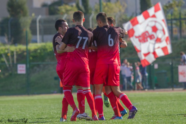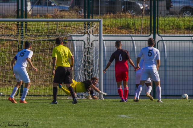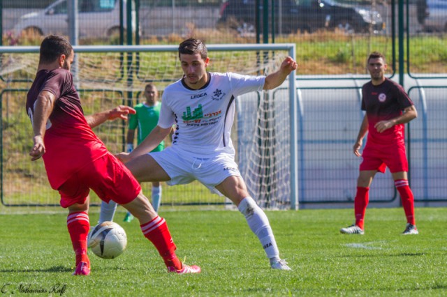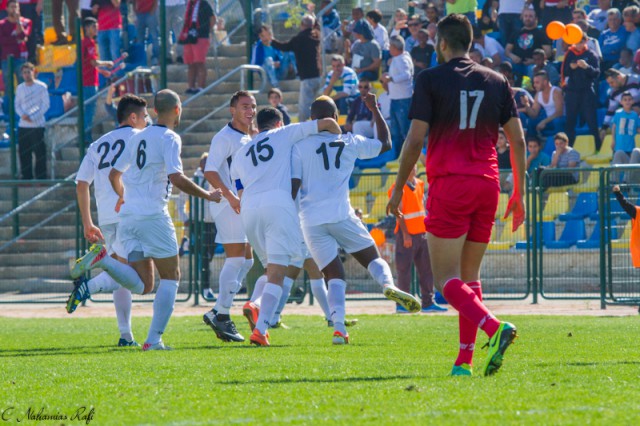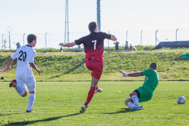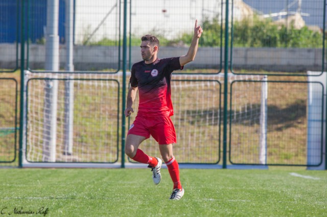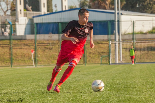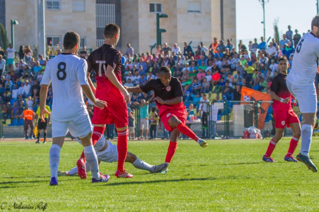 אסף גובזה עם בעיטה אדירה לשערה של מרמורק.( צילום:רפי נחמיאס)
