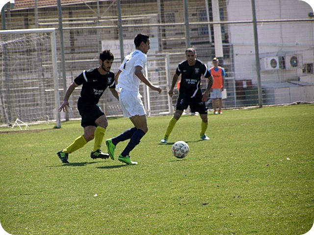 הרן אלגרישי משמאל משגיח על עומר בוארון בלבן מהרצליה. (צילום: אמיר שיבי)