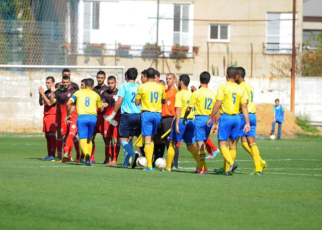 שחקני שתי הקבוצות עולים אל כר הדשא.( צילום:רמי גרידיש)