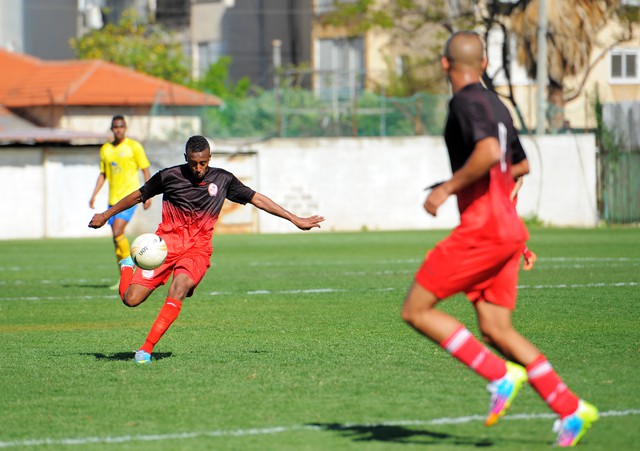 איילה בועט את בעיטת העונשין .( צילום:רמי גרידיש)
