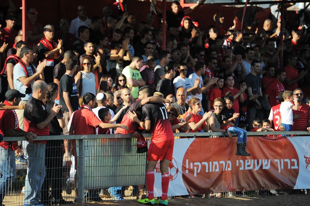 אוהדי מרמורק חוגגים. (צילום:רמי גרידיש)