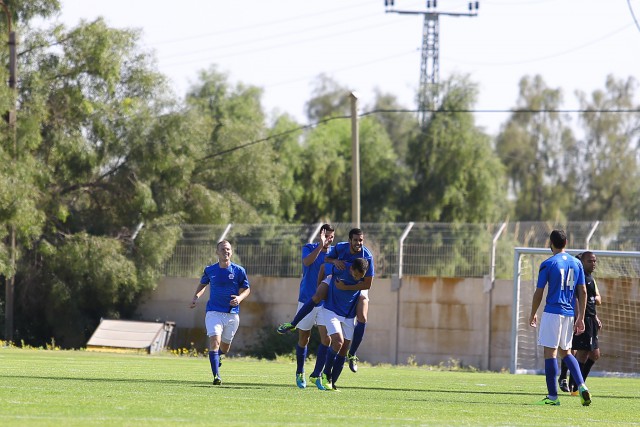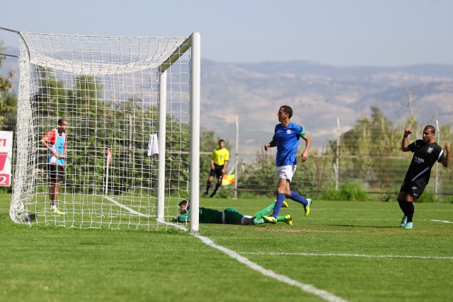 מוטי אוחיון חוגג שער יתרון של בית שאן._ צילום:ירון כהן)