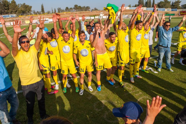מיכה יפרח מורם על הכתפיים . ( צילום:רפי נחמיאס)