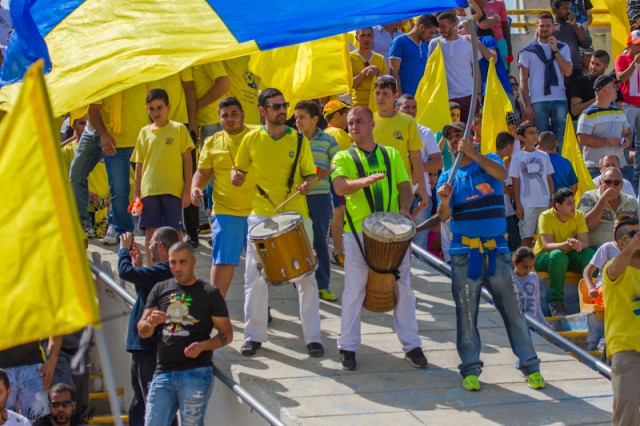 המתופפים ביציע הצהוב של קרית גת . ( צילום:רפי נחמיאס)