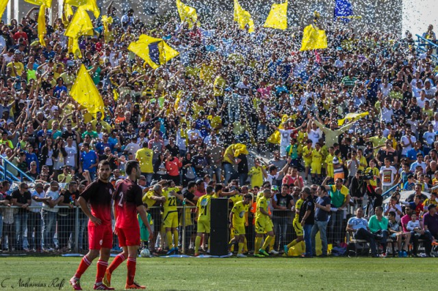 היציע הצהוב באקסטזה. ( צילום : רפי נחמיאס)