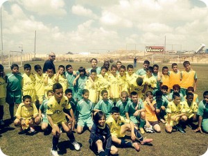 שתי הקבוצות ילדים של קרית גת וכפר קאסם השבוע משחקים ביחד. (צילום: יח"צ)