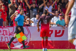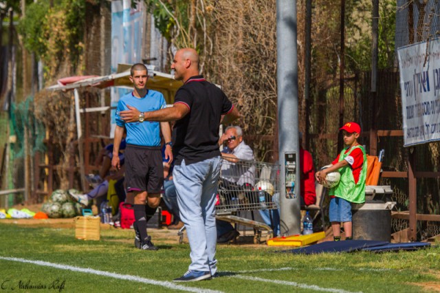 הספסל היפואי זועם על אורן סימיניאן .( צילום: רפי נחמיאס)
