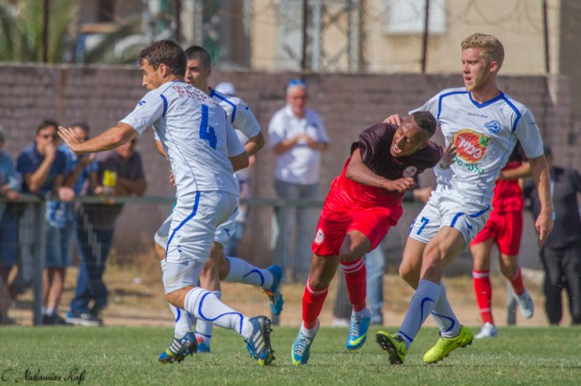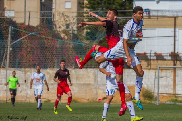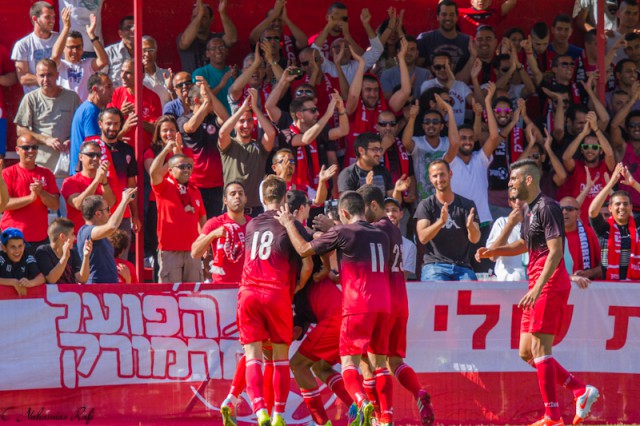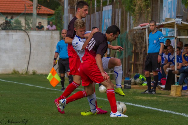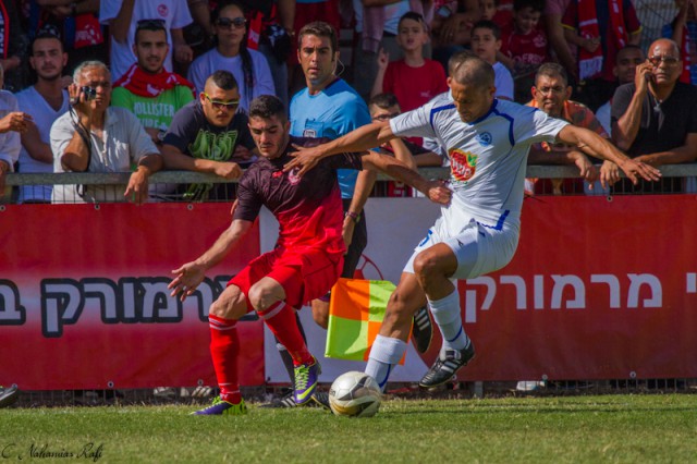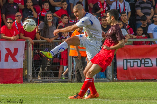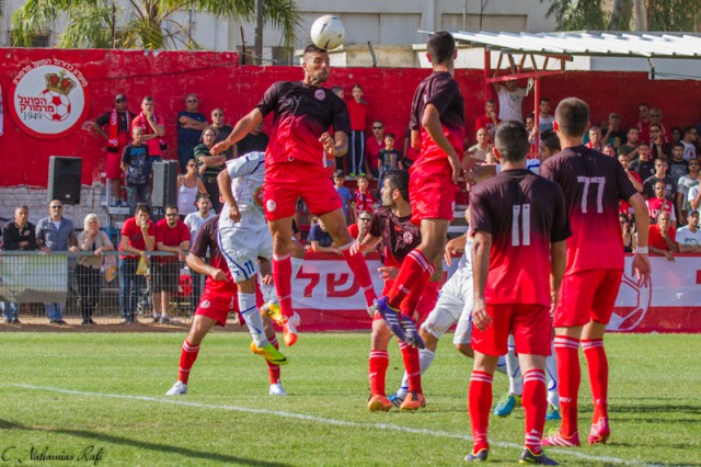 אור אלקבץ גבוה מעל כולם .משחק מצוין של הבלם המוכשר. ( צילום:רפי נחמיאס)