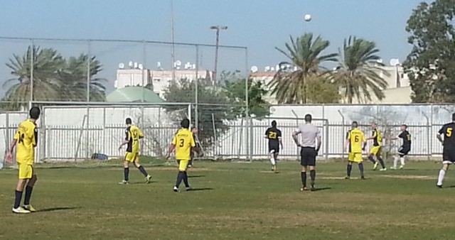 השחקנים משקיפים על הכדור. משחק שקול. (צילום: שמעון תורג'מן)