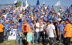אוהדי שעריים צבעו את היציעים בכחול (צילום: איתמר מורז)