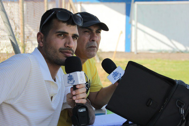 ארז זנו ועובד לוי, גילו ספורטיבית והתגייסו ברגע האחרון בכדי לשדר את המשחק (צילום: איתמר מורז)