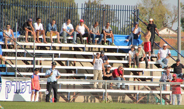 הקומץ שבכל זאת הגיע למגרש, ביניהם היו"ר חנן עדני (צילום: איתמר מורז)