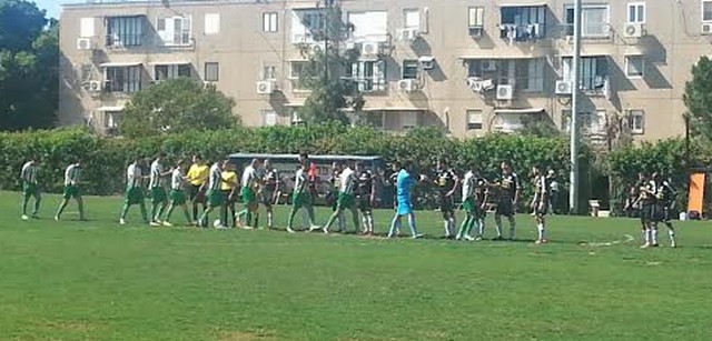השחקנים לפני המשחק (צילום: שמעון תורג'מן)