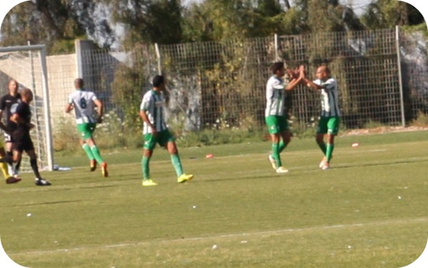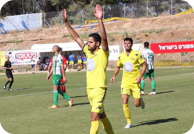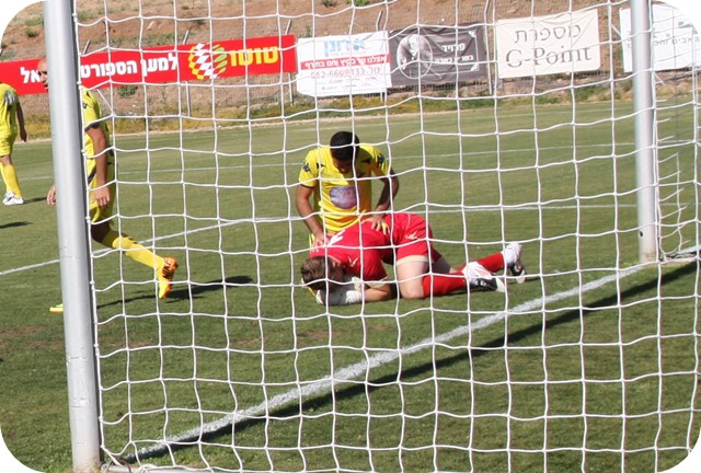 אדלשטיין חוגג. לוי לא מאמין שהכדור ברשת (צילום: יקיר כהן)