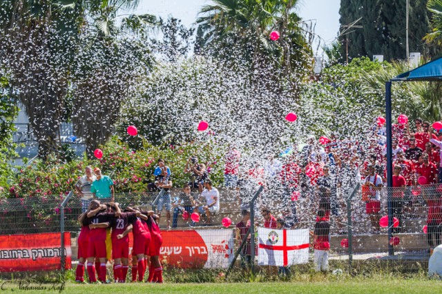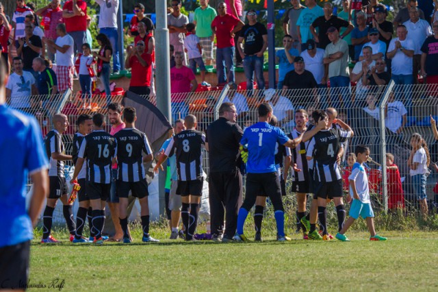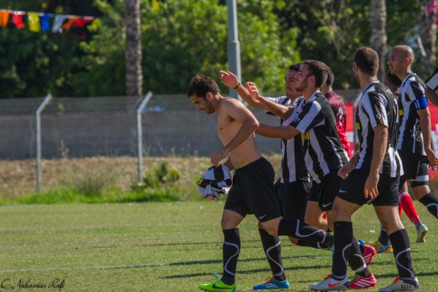 שחקני אזור חוגגים עם רפי סגל .( צילום: רפי נחמיאס)