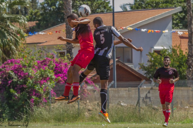 רועי סבג נוגח.בן ישי מציל את אזור מספיגה נוספת. ( צילום: רפי נחמיאס)
