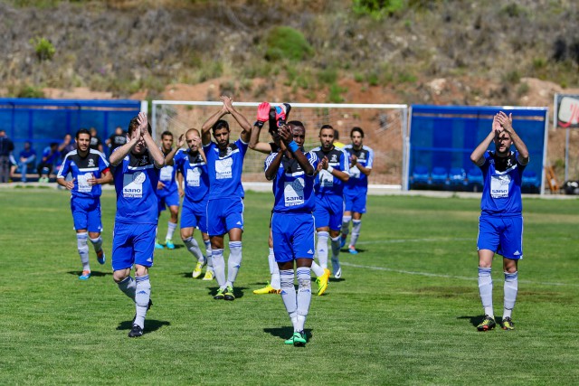 שחקני מגדל העמק מודים לקהל .( צילום: ירון כהן)