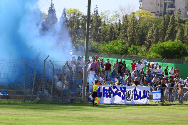 אבוקה כחולה ביציע של מגדל העמק. ( צילום: ירון כהן)