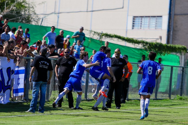 שחקני מגדל העמק חוגגים .( צילום: ירון כהן)