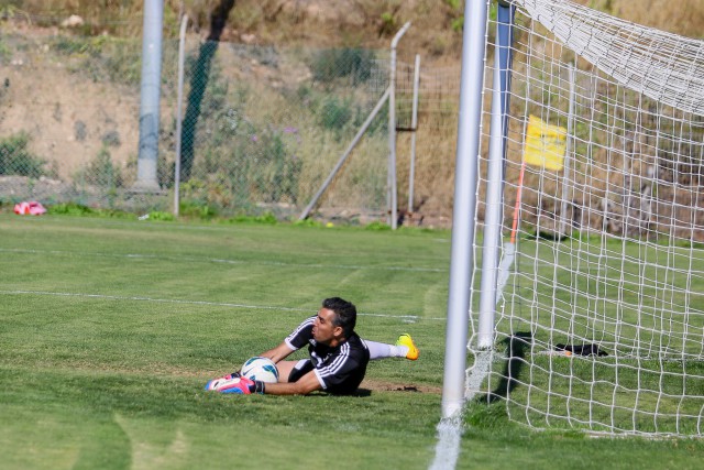 אבי עמוס עוצר את הפנדל של אבו סאלח. ( צילום: ירון כהן)