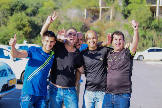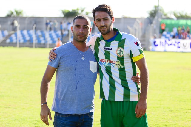 ענאן נאסר אלדין ורפי בוסקילה בצילום אחרי המשחק. ( צילום: ירון כהן)